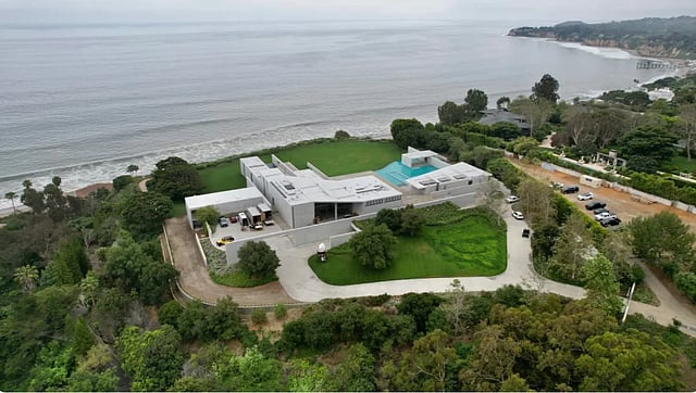 Tadao Ando, a renowned Japanese architect, created the 8-acre concrete complex, which is located in the exclusive Paradise Cove neighborhood and overlooks the Pacific Ocean. Due to the fact that Bill and Maria Bell, modern art collectors, commissioned the 40,000 square foot mansion more than ten years ago, it also serves as an art museum. Given that the celebrities' private art collection is rumored to be rather spectacular, it is not surprising that they visited the home.