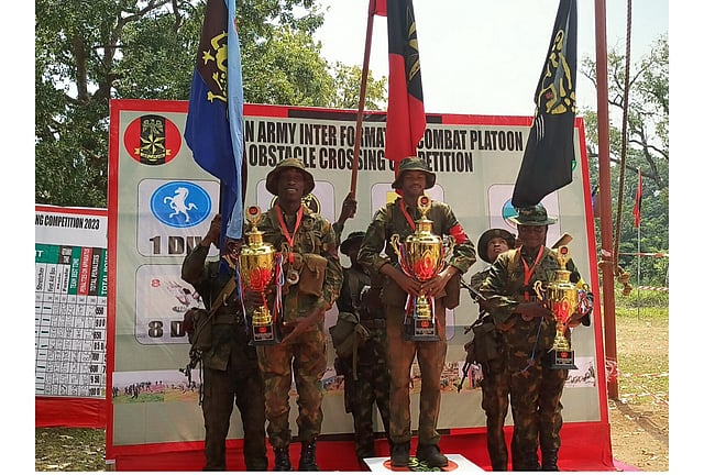 Troops of Army Headquarters Garrison Yesterday emerged the overall winners of the 2023 Inter-Formation Combat Obstacle Crossing Competition.