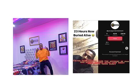 Nigerian TikTok content creator Young C (username Youngcentertainment) live streamed a dangerous stunt where he was buried alive for 24 hours. TikTok took down his account for violating their safety guidelines as the video went viral.
