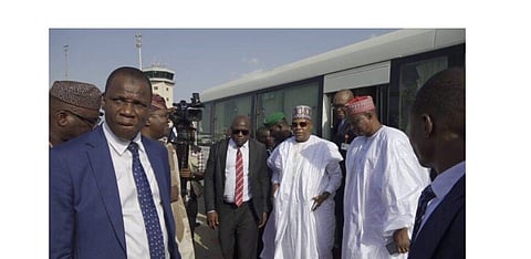 The vice president arrived at Murtala Mohammed International Airport Kano, at 1:14pm. was received by the Deputy Governor of Kano State, Alhaji Aminu Abdulsalam Gwarzo, Speaker of the House of Representatives, Tajudeen Abbas, Senate Majority Leader, Sen. Opeyemi Bamidele and Sen. Kawu Sumaila.